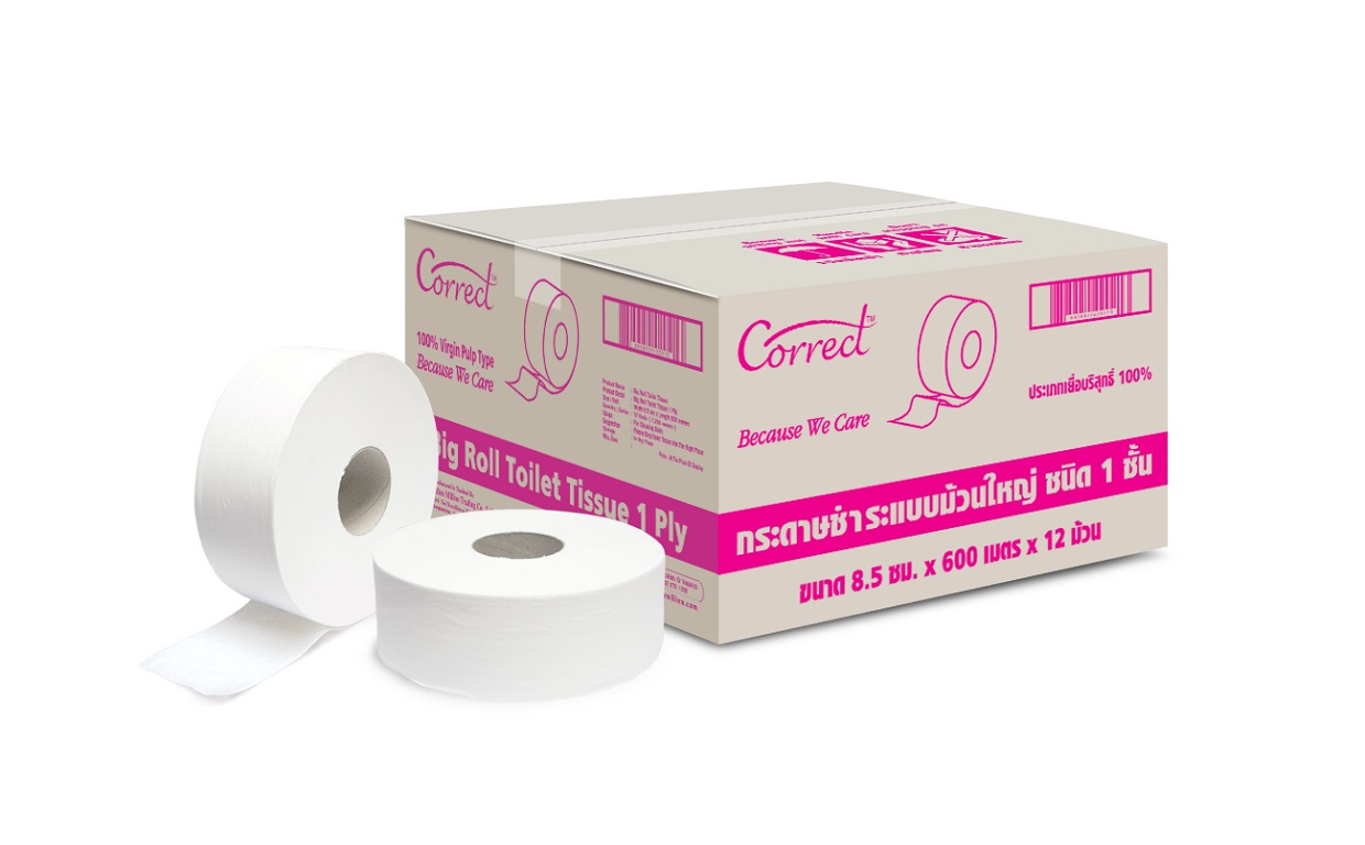 กระดาษชำระแบบม้วนใหญ่ ชนิด 1 ชั้น ขนาด 600 เมตร x 8 ซม. (ขนาดบรรจุ 600 เมตร x 12 ม้วน (7,200 เมตร)/หีบ)