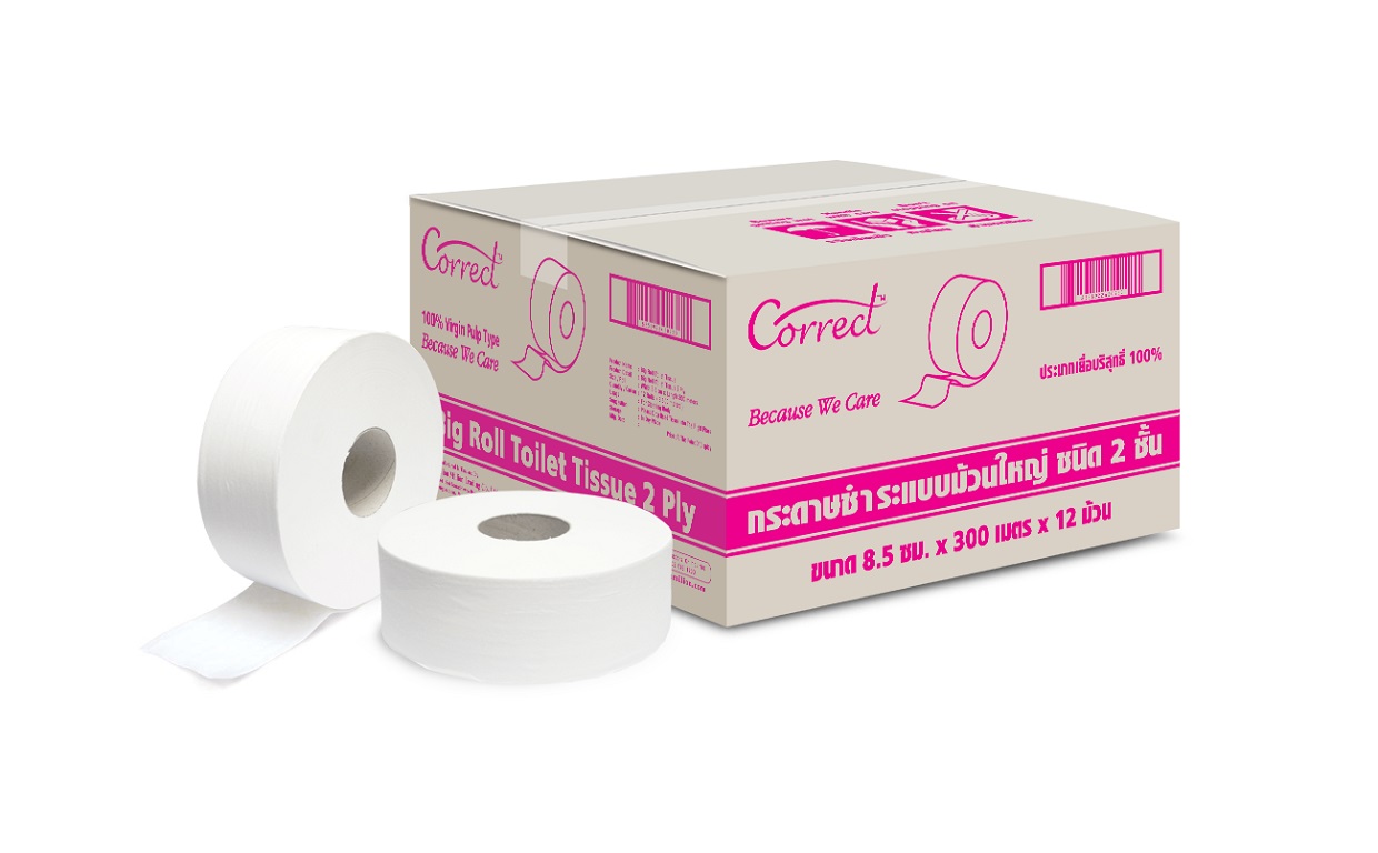 กระดาษชำระแบบม้วนใหญ่ ชนิด 2 ชั้น ขนาด 300 เมตร x 8 ซม. (ขนาดบรรจุ 300 เมตร x 12 ม้วน (3,600 เมตร)/หีบ)