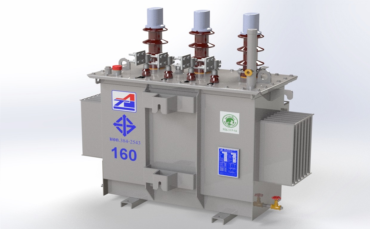 หม้อแปลงไฟฟ้า กำลังไฟฟ้า 160 kVA 3 เฟส ความถี่ 50Hz แรงดันไฟฟ้าของระบบ 22 kV